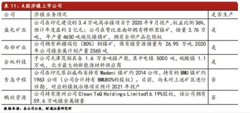 據(jù)財通證券李帥華9月28日報告整理,A股涉鎳上市公司有:盛屯礦業(yè)、西部礦業(yè)、合縱科技、青島中程、鵬欣資源。