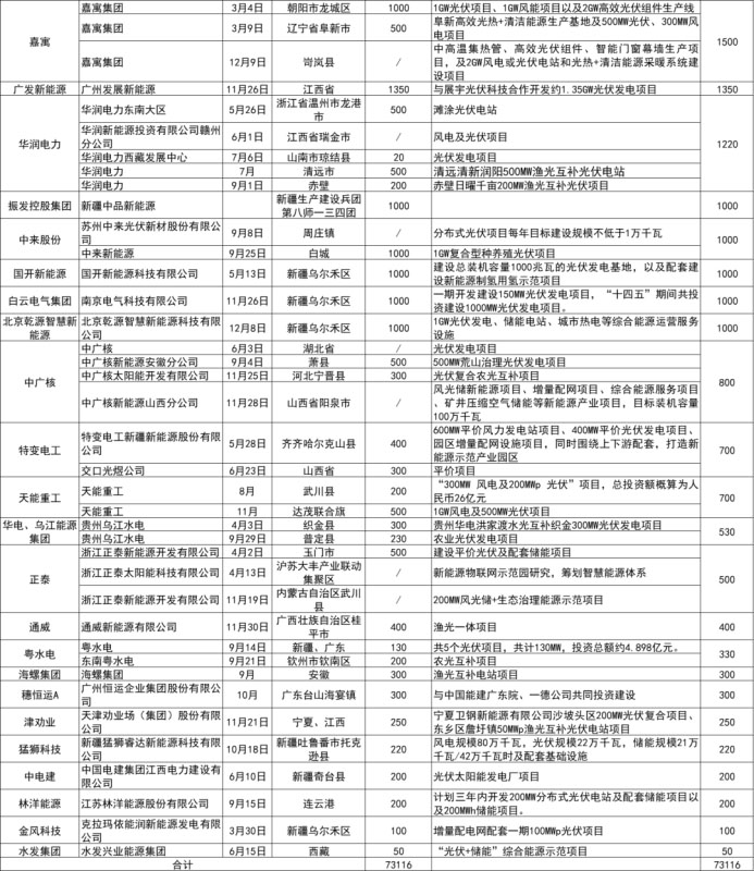 圖片 備注:上表匯總了自10月起各企業(yè)簽署擬投建的光伏項(xiàng)目情況,特別強(qiáng)調(diào)的是,因項(xiàng)目名單眾多,難免有疏漏,上述表格不做排名依據(jù),僅供讀者參考
