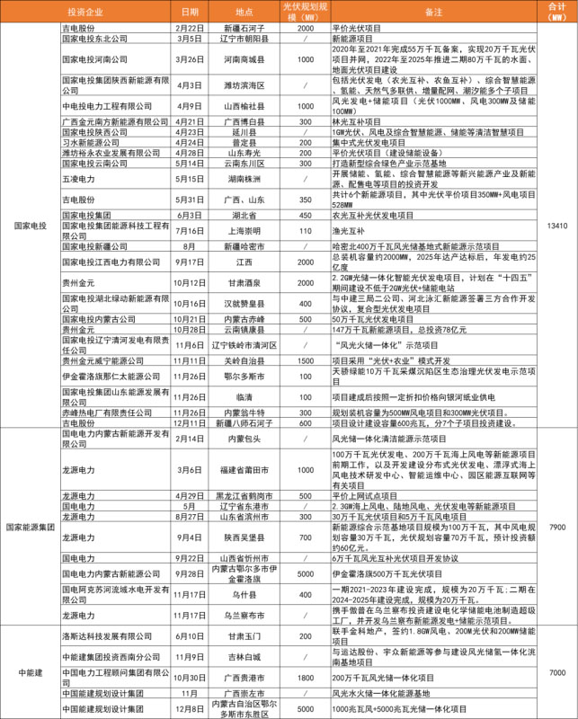 備注:上表匯總了自2020年1月起各企業(yè)簽署擬投建的光伏項(xiàng)目情況,特別強(qiáng)調(diào)的是,因項(xiàng)目名單眾多,難免有疏漏,表格不做排名依據(jù),僅供讀者參考