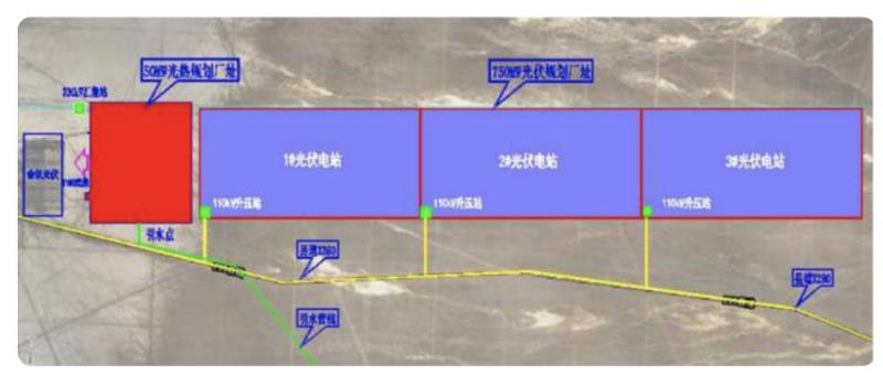 從實(shí)施方案來(lái)看,50MW光熱項(xiàng)目是國(guó)家首批20個(gè)光熱示范項(xiàng)目之一,該項(xiàng)目已于2017年6月正式開(kāi)工建設(shè),今年9月份,甘肅省綠色生態(tài)產(chǎn)業(yè)發(fā)展政府引導(dǎo)基金管理有限公司向阿克塞項(xiàng)目的業(yè)主公司甘肅光熱發(fā)電有限公司增資擴(kuò)股近6億元,推動(dòng)該項(xiàng)目復(fù)啟;光伏方面,規(guī)劃交流側(cè)裝機(jī)出力750MW,直流側(cè)裝機(jī)約900MWp,光伏項(xiàng)目分 為3塊地規(guī)劃建設(shè),每塊地裝機(jī)容量、容配比完全一致。