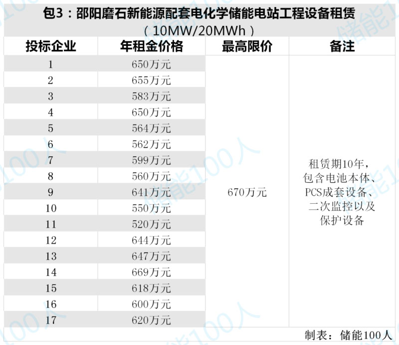 根據(jù)“儲能100人”此前獨家跟蹤報道(湖南新能源配套儲能項目核心設(shè)備租賃開標,最終會花落誰家?),該項目投標競爭異常激烈,共有21家公司參與角逐。有投標企業(yè)表示,該項目對設(shè)備的技術(shù)指標要求很高,系統(tǒng)效率要求在86%-88%之間,10年內(nèi)儲能系統(tǒng)放電容量不低于初裝時的90%。