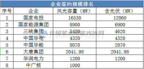 (注:上表企業(yè)按明確光伏項(xiàng)目簽約規(guī)模排名,不包含風(fēng)光儲一體化、新能源項(xiàng)目規(guī)模;國投電力未找到簽約數(shù)據(jù))