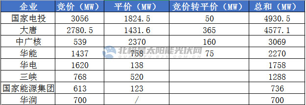 國家電投作為“五大四小”發(fā)電集團(tuán)中的新能源主力,位列榜首,共拿下4.93GW競、平價(jià)項(xiàng)目規(guī)模,其中,競價(jià)項(xiàng)目3.06GW,平價(jià)項(xiàng)目(含競轉(zhuǎn)平)1.87GW。