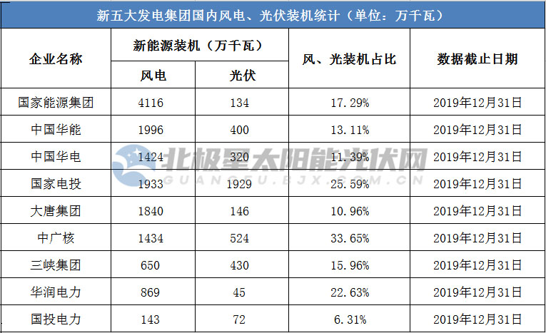 據(jù)北極星太陽能光伏網(wǎng)統(tǒng)計(jì),截至2019年底,“五大四小”中8家風(fēng)光裝機(jī)占比已達(dá)總裝機(jī)的10%以上,其中國家電投、中廣核、華潤電力風(fēng)光裝機(jī)占比超20%。