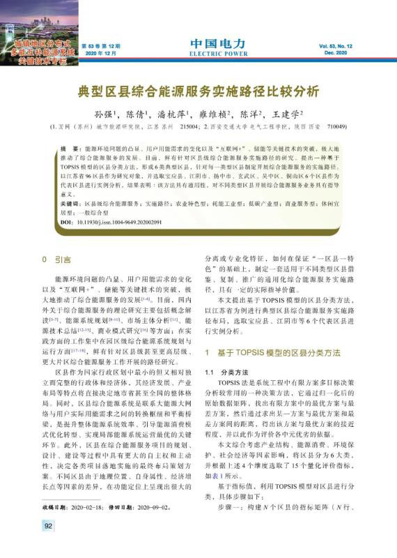 SUN Qiang, CHEN Qian, PAN Hangping, et al. Comparative analysis of integrated energy service implementation paths in typical districts and counties[J]. Electric Power, 2020, 53(12): 92-100, 109.