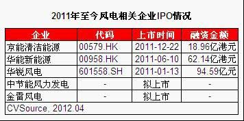 資本市場(chǎng)方面,2011年僅有3家風(fēng)電企業(yè)實(shí)現(xiàn)IPO,另根據(jù)4月12日證監(jiān)會(huì)最新公布的首次公開(kāi)發(fā)行股票申報(bào)企業(yè)名單顯示,僅有中節(jié)能、金雷風(fēng)電2家企業(yè)擬A股上市。