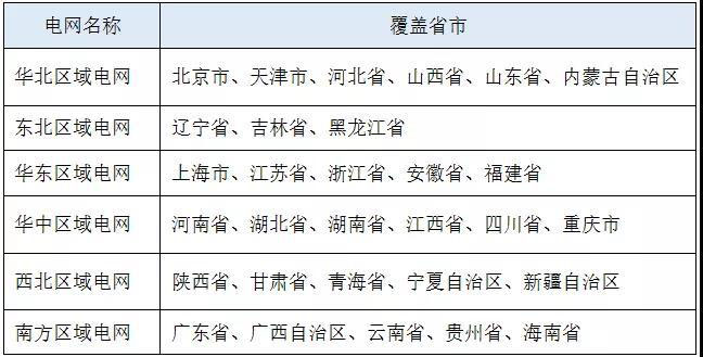 對(duì)應(yīng)區(qū)域電網(wǎng)所轄省市如下表所示:
