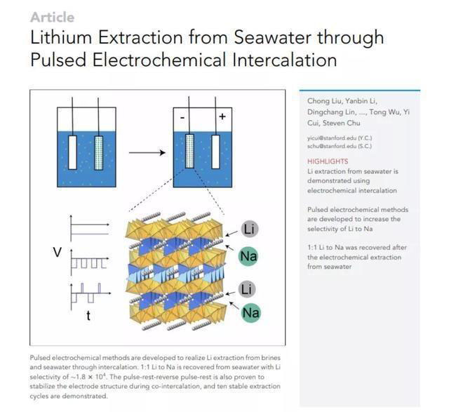 圖 | 劉翀發(fā)表的《用電化學(xué)方式在海水中提鋰》研究被收錄在 Joule 期刊中