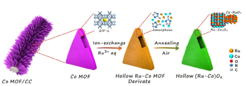 圖2 在碳布上制造中空(Ru-Co)Ox納米片陣列的過程示意圖