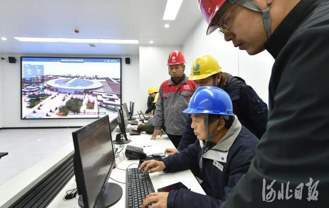 12月24日20時許,10KV雄安高鐵明珠分布式光伏電站匯集站,技術人員正在進行并網調試。河北日報記者趙海江攝