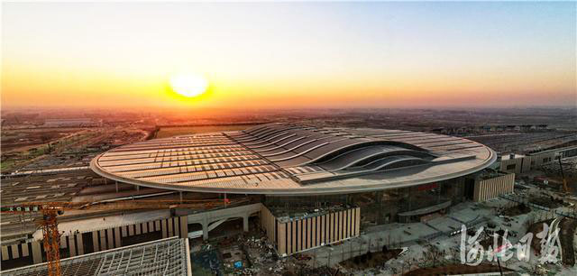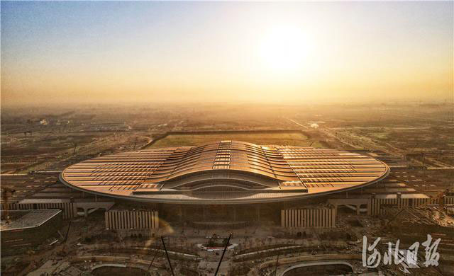 12月25日8時許,晨光照射在雄安站屋頂的太陽能光伏板上。河北日報記者趙海江攝