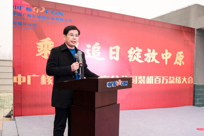 張超群代表中廣核新能源對(duì)河南分公司七年來(lái)全體員工齊心協(xié)力、攻堅(jiān)克難,實(shí)現(xiàn)裝機(jī)超過(guò)100萬(wàn)千瓦表示祝賀,對(duì)河南分公司全體干部員工的辛勤付出表示感謝。他對(duì)河南分公司后續(xù)工作提出了三點(diǎn)要求:一是要加強(qiáng)黨風(fēng)廉政建設(shè),堅(jiān)持全面從嚴(yán)治黨,促進(jìn)分公司經(jīng)營(yíng)業(yè)務(wù)全面發(fā)展,推動(dòng)分公司治理體系和治理能力不斷提升;二是要主動(dòng)擔(dān)當(dāng)作為,搶抓市場(chǎng)機(jī)遇,做好“十四五”開(kāi)篇布局,為國(guó)家2030年前達(dá)到碳峰值,2060年前實(shí)現(xiàn)碳中和的宏偉目標(biāo)拼搏奮斗;三是要找準(zhǔn)定位,打造核心競(jìng)爭(zhēng)力,為中廣核新能源持續(xù)高質(zhì)量發(fā)展貢獻(xiàn)力量。