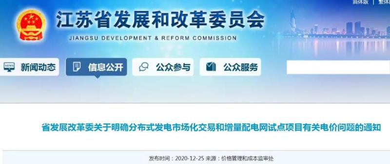 中國儲能網(wǎng)訊:日前,江蘇省發(fā)改委印發(fā)關于明確分布式發(fā)電市場化交易和增量配電網(wǎng)試點項目有關電價問題的通知,全文如下:
