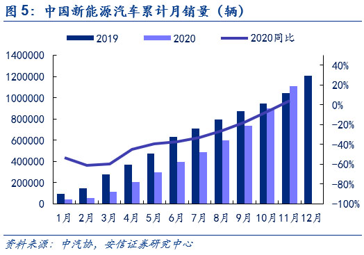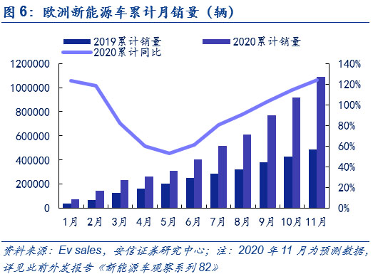 下半年需求端高增長(zhǎng)帶來漲價(jià)契機(jī)。中國(guó)來看,累計(jì)數(shù)據(jù)上來看, 2020年1-11月,國(guó)內(nèi)新能源汽車產(chǎn)銷分別為111.9萬輛和110.9萬輛,同比分別下降0.1%和增長(zhǎng)3.9%,銷量實(shí)現(xiàn)由負(fù)轉(zhuǎn)正,上半年受到疫情影響產(chǎn)銷不及預(yù)期,但下半年在產(chǎn)品力持續(xù)驅(qū)動(dòng)下產(chǎn)銷超預(yù)期增長(zhǎng)。歐洲方面,盡管上半年在疫情影響下,歐洲新能源車銷量實(shí)現(xiàn)了V字走勢(shì),但自下半年以來,碳排放的倒逼和各國(guó)電動(dòng)化政策的加碼助推新能源車銷量持續(xù)上行。全球新能源車市下半年以來的持續(xù)高增長(zhǎng)已為上游的電解液和六氟磷酸鋰帶來漲價(jià)契機(jī)。