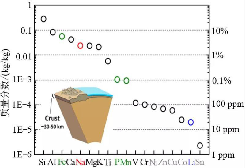 眾所周知,元素周期表中鈉與鋰是處于同一主族且具有相似物理化學(xué)性質(zhì)的金屬元素,地球上鈉資源儲(chǔ)量非常豐富,元素含量約為23000 ppm,豐度位于第6位(圖1),且鈉分布于全球各地,可完全不受資源和地域的限制,所以在資源方面,鈉離子電池比鋰離子電池具有更大的優(yōu)勢。此外,鈉離子與鋰離子在電池體系中具有類似的脫/嵌機(jī)制(圖3),對鈉離子電池的研究與開發(fā)可緩解由鋰資源短缺引發(fā)的新能源電池發(fā)展受限的問題。雖然在能量密度等方面與目前的鋰離子電池相比還存在差距,然而在低速電動(dòng)車和儲(chǔ)能應(yīng)用中成本和壽命是比能量密度更重要的指標(biāo),由此可以判斷,鈉離子電池將在低速電動(dòng)車、大規(guī)模電力儲(chǔ)能、5G通信基站、數(shù)據(jù)中心等應(yīng)用領(lǐng)域擁有比鋰離子電池更大的市場競爭優(yōu)勢。