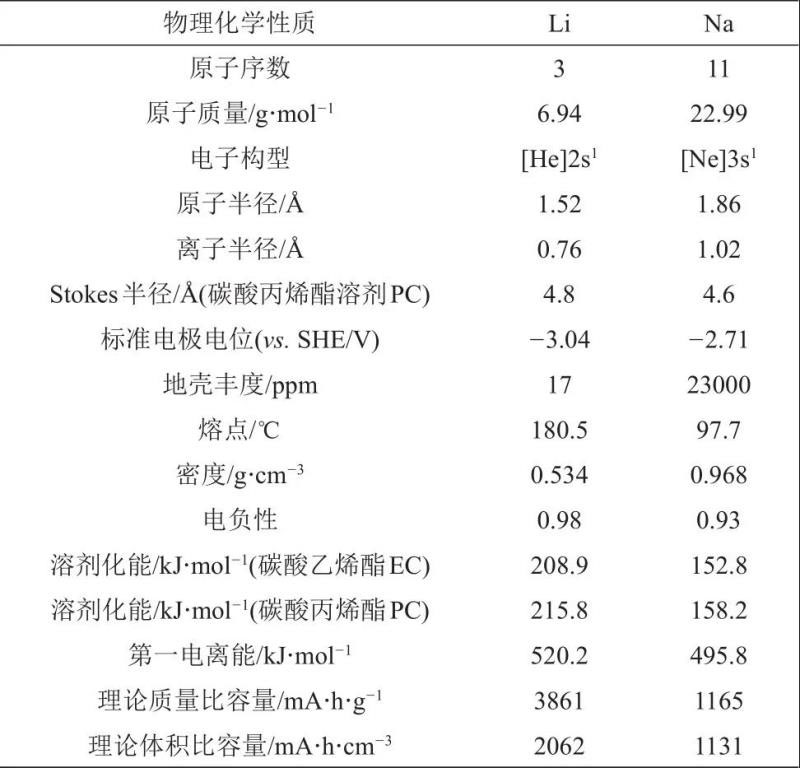 表1 鋰與鈉的物理化學(xué)性質(zhì)對比