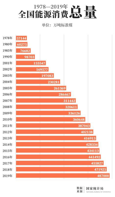 ↑改革開放以來,我國歷年能源消費(fèi)總量↑