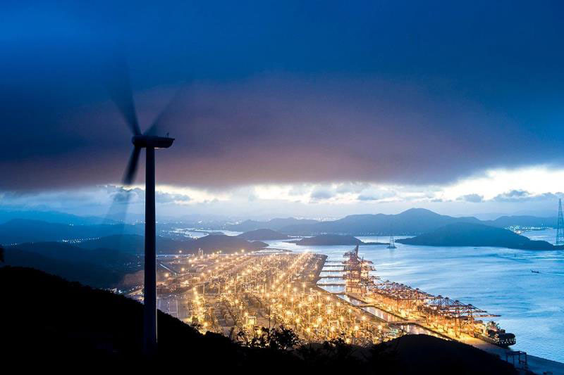 風(fēng)力發(fā)電和港口夜景