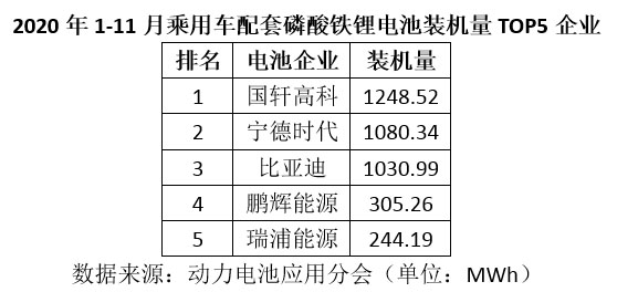 另外,從1-11月上險(xiǎn)數(shù)據(jù)來看,乘用車市場(chǎng)磷酸鐵鋰電池裝機(jī)量最高的仍然是國軒高科,達(dá)1248.52MWh,其次為寧德時(shí)代1080.34MWh,第三為比亞迪1030.99MWh。