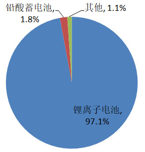 2020年新增投運(yùn)的電化學(xué)儲(chǔ)能中,鋰離子電池儲(chǔ)能新增裝機(jī)容量為762.3MW,占比97.1%,排名第一;鉛酸蓄電池儲(chǔ)能新增裝機(jī)容量為14.2MW,占比1.8%。如下圖所示。