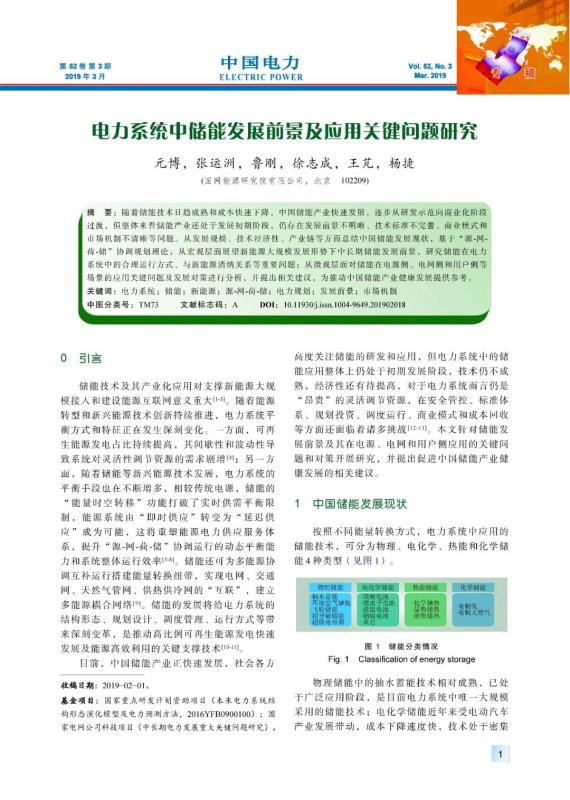 YUAN Bo, ZHANG Yunzhou, LU Gang, et al. Research on key Issues of energy storage development and application in power systems[J]. Electric Power, 2019, 52(3): 1-8.