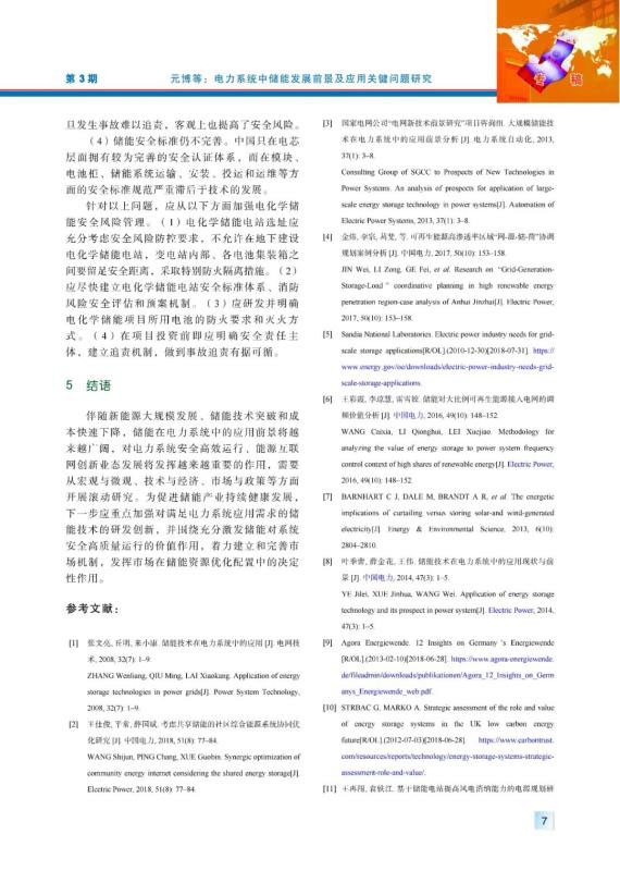 元博, 張運洲, 魯剛, 等. 電力系統(tǒng)中儲能發(fā)展前景及應用關鍵問題研究[J]. 中國電力, 2019, 52(3): 1-8.