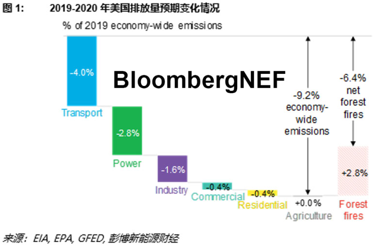 在這極具挑戰(zhàn)性的一年中,氣候治理方面出現(xiàn)了四個(gè)積極的信號(hào)。首先,在疫情的直接沖擊下,我們迎來了短暫的窗口期。根據(jù)彭博新能源財(cái)經(jīng)的分析,美國2020年的排放量可能會(huì)下降9%,這意味著唯一一個(gè)退出《巴黎協(xié)定》的國家突然(盡管是暫時(shí)的)回到了巴黎協(xié)定的目標(biāo)減排軌道上。當(dāng)然,不僅是美國出現(xiàn)了新冠所致的減排,全球范圍內(nèi)都可能會(huì)出現(xiàn)類似的現(xiàn)象,意外減排也不僅出現(xiàn)在2020年?,F(xiàn)在看來,V型復(fù)蘇是不可能的,根據(jù)彭博新能源財(cái)經(jīng)11月發(fā)布的《2020年新能源市場長期展望》(NEO 2020),疫情的長期經(jīng)濟(jì)影響可能相當(dāng)于目前至2050年間2.5年的減排成果。如果航空業(yè)復(fù)蘇緩慢,新冠所致減排量可能更大。