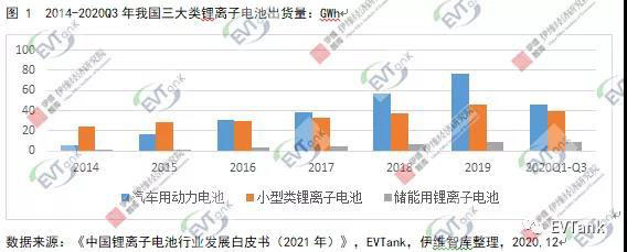按應(yīng)用領(lǐng)域分類,鋰離子電池主要分為汽車用動力電池(EV Lib)、小型類鋰離子電池(Small Lib)和儲能用鋰離子電池(ESS Lib)三大類,其中,汽車用動力電池出貨量主要受新能源汽車銷量的影響,近年來各國對環(huán)保的重視驅(qū)動新能源汽車滲透率逐步提高,雖然上半年受疫情影響,汽車用動力電池出貨量同比下滑45.8%,但是下半年新能源汽車產(chǎn)銷量的單月同比大幅增長,截止到2020年11月,我國汽車用動力電池累計出貨量62.5Gwh,累計同比下降幅度已經(jīng)收窄到7.0%。小型類鋰離子電池主要用于手機、電腦、電動工具、電動二輪車及新興消費應(yīng)用等領(lǐng)域,2020Q1-Q3,在5G手機、電動工具和電動兩輪車用電池的帶動下,我國小型類鋰離子電池出貨量達(dá)到39.7Gwh,同比增長16.5%;儲能用鋰離子電池仍處于市場導(dǎo)入階段,出貨量較少,但增長速度較快,在基站建設(shè)、海外儲能和國內(nèi)發(fā)電側(cè)儲能項目的帶動下,2020Q1-Q3我國儲能電池出貨量為9.1GWh,已經(jīng)超過去年全年水平。
