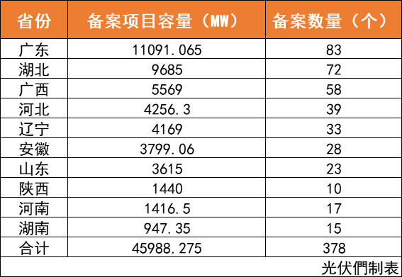 此外,從省份來(lái)看,廣東、湖北、廣西、河北、遼寧等省份倍受投資企業(yè)的青睞。其中廣東省以83個(gè)項(xiàng)目、11.09GW規(guī)模位列所統(tǒng)計(jì)的19省備案數(shù)量及規(guī)模第一。目前,湖北于下半年備案項(xiàng)目已突破過(guò)9GW,廣西、河北、遼寧備案超4GW,安徽、山東省項(xiàng)目也已突破3GW。