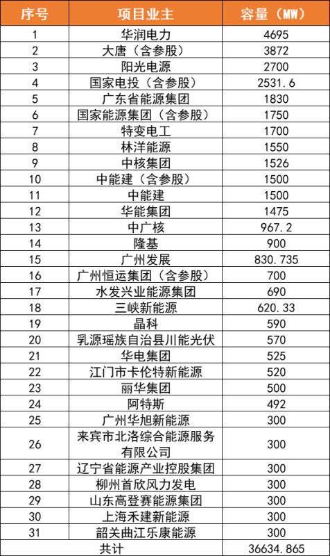 備注:表中僅列出所統(tǒng)計(jì)電站項(xiàng)目總?cè)萘砍?00MW的業(yè)主名單;特別強(qiáng)調(diào)的是,上述項(xiàng)目來(lái)源于項(xiàng)目審批監(jiān)管平臺(tái),因項(xiàng)目名單眾多,難免有疏漏,上述表格不做排名依據(jù),僅供讀者參考。
