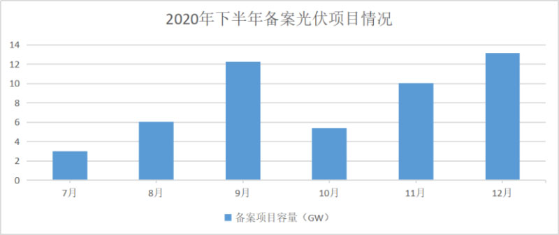 在各發(fā)電企業(yè)陸續(xù)加大新能源投資開(kāi)發(fā)力度之后,光伏電站項(xiàng)目資源爭(zhēng)奪戰(zhàn)一觸即發(fā)。據(jù)光伏們統(tǒng)計(jì),2020年下半年以來(lái),在競(jìng)價(jià)項(xiàng)目外,有超49GW地面光伏電站項(xiàng)目已完成備案(具體名單見(jiàn)文末),其中僅12月備案規(guī)模便已超13GW。