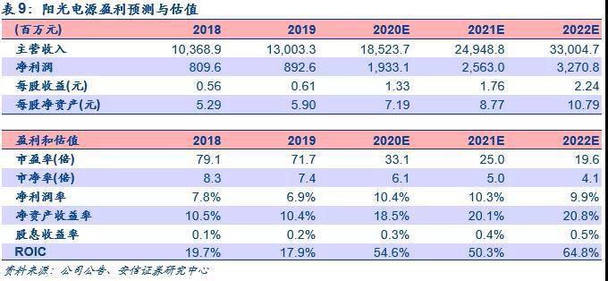 儲能業(yè)務(wù)繼續(xù)高增,享受廣闊市場空間。目前公司儲能系統(tǒng)廣泛應(yīng)用在中國、美國、英國、加拿大、德國、日本、澳大利亞、印度等眾多國家,參與的全球重大儲能系統(tǒng)項目超過1000個。在北美,陽光電源僅工商業(yè)儲能市場份額就超過了20%;在澳洲,通過與分銷商的深度合作,陽光電源戶用光儲系統(tǒng)市占率超20%。在中國市場,公司先后成功參與了上海洋山港、西藏措勤微電網(wǎng)等多個儲能示范項目。2020年上半年,公司儲能業(yè)務(wù)持續(xù)高增,實現(xiàn)營收2.5億元,同比增長49.4%。2020年公司儲能系統(tǒng)集成業(yè)務(wù)營收規(guī)模有望超10億元,未來儲能業(yè)績有望充分受益于儲能市場發(fā)展而持續(xù)放量。