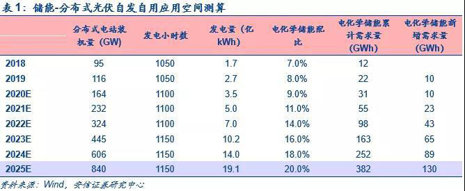 5)假設(shè)全部采用電化學(xué)儲能技術(shù)。根據(jù)上述假設(shè),2021-2025年全球分布式光伏自發(fā)自用對電化學(xué)儲能的累計需求將達(dá)到350GWh,2025年全球分布式光伏自發(fā)自用對電化學(xué)儲能的需求將達(dá)到130GWh。