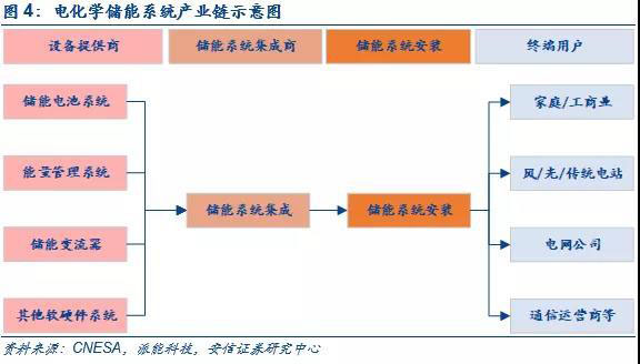 ■概覽:電化學(xué)儲能產(chǎn)業(yè)鏈由設(shè)備提供商、儲能系統(tǒng)集成商和儲能系統(tǒng)安裝商組成,在電力系統(tǒng)中應(yīng)用場景廣泛。電化學(xué)儲能產(chǎn)業(yè)鏈一般是由系統(tǒng)集成商對整個儲能系統(tǒng)的設(shè)備進(jìn)行選型,外購或自行生產(chǎn)儲能電池系統(tǒng)、儲能變流器及其他電氣設(shè)備后,匹配集成給下游的安裝商,安裝商在安裝施工后最終交付終端用戶。