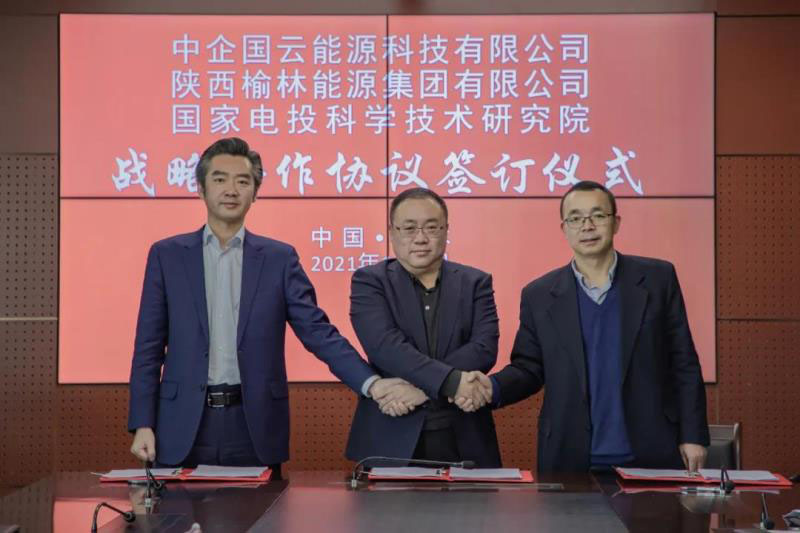 2021年1月5日,中央研究院在榆林市與陜西榆林能源集團(tuán)有限公司、中企國(guó)云能源科技有限公司簽署戰(zhàn)略合作框架協(xié)議。榆林市人民政府副市長(zhǎng)、榆能集團(tuán)黨委書記、董事長(zhǎng)王國(guó)忠,集團(tuán)公司科技創(chuàng)新總監(jiān),中央研究院黨委書記、董事長(zhǎng)范霽紅,中企國(guó)云能源科技有限公司董事長(zhǎng)汪恒海出席簽約儀式并分別代表三方簽約。