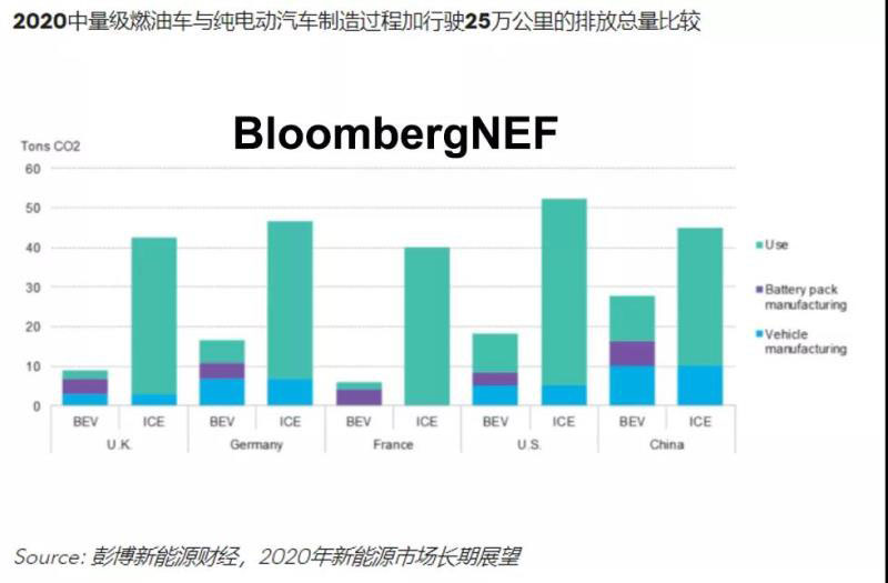 中國(guó)儲(chǔ)能網(wǎng)訊:新能源汽車行駛時(shí)無(wú)尾氣排放,但在制造和行駛過(guò)程中仍有相關(guān)排放。部分國(guó)家的監(jiān)管機(jī)構(gòu)考慮對(duì)純電動(dòng)汽車(BEV)和燃油車(ICE)全生命周期內(nèi)二氧化碳排放的可能性。本報(bào)告中,BNEF提出了到2040年美國(guó)、中國(guó)、英國(guó)、德國(guó)和法國(guó)的新能源汽車和燃油車使用過(guò)程和全生命周期排放量的估算。