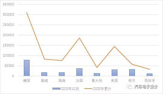 從2020年總量來看,德國破了30萬,法國接近20萬,英國15萬;挪威和瑞典向10萬的關(guān)口進(jìn)行沖刺,意大利和西班牙都快達(dá)到了5萬的量級。
