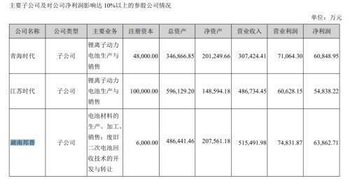 寧德時代2019年年報顯示,報告期內(nèi),湖南邦普對寧德時代凈利潤影響超過10%。