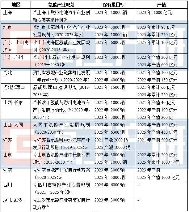 與此同時,2020年以來,北京、廣東、上海、山東、河北等省市紛紛發(fā)布氫能產(chǎn)業(yè)中長期發(fā)展規(guī)劃及實施方案,加快氫能產(chǎn)業(yè)布局及發(fā)展,氫能產(chǎn)業(yè)有望成為地方經(jīng)濟增長的新動能。