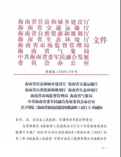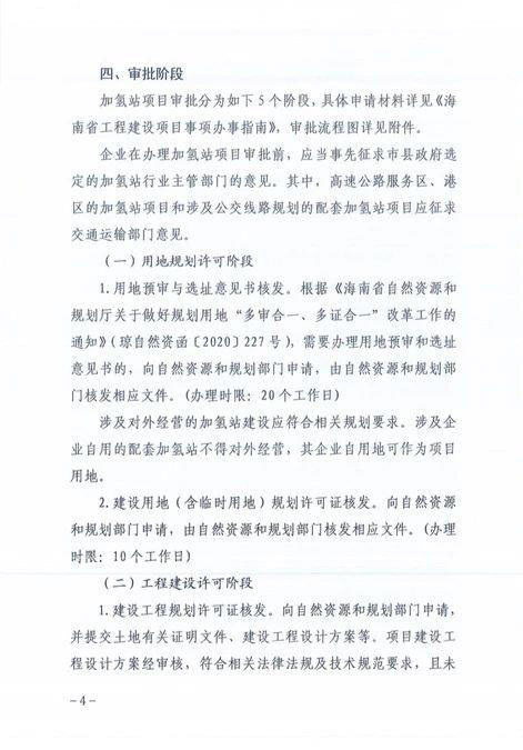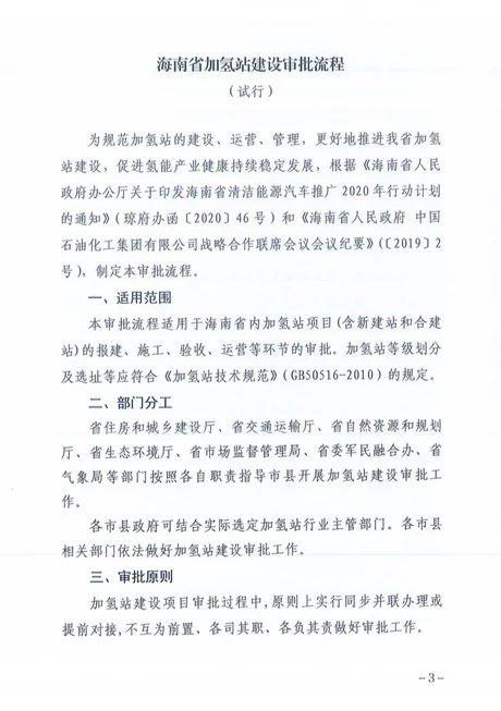 中國儲能網(wǎng)訊:為規(guī)范加氫站的建設(shè)、運營、管理,更好地推進(jìn)海南省加氫站建設(shè),促進(jìn)氫能產(chǎn)業(yè)健康持續(xù)穩(wěn)定發(fā)展,根據(jù)《海南省人民政府辦公廳關(guān)于印發(fā)海南省清潔能源汽車推廣2020年行動計劃的通知》和《海南省人民政府 中國石油化工集團(tuán)有限公司戰(zhàn)略合作聯(lián)席會議會議紀(jì)要》,制定本審批流程。