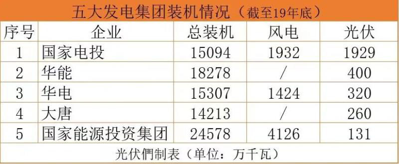 與其他發(fā)電集團不同的是,在可再生能源領(lǐng)域的布局中,國家能源集團還是全球最大的風(fēng)電投資商,并且一度暫停光伏投資數(shù)年。截至2019年底,該集團持有超過40GW的風(fēng)電裝機,與之形成鮮明對比的是,光伏伏裝機卻位居五大發(fā)電集團最后一位,僅為1.31GW。盡管在今年的光伏項目資源競爭中,也多次出現(xiàn)了國家能源集團的身影,但從公開的項目信息來看,與大唐、華能等同樣光伏體量較小的發(fā)電集團相比,國家能源集團在光伏方面的投資力度仍略遜一籌。