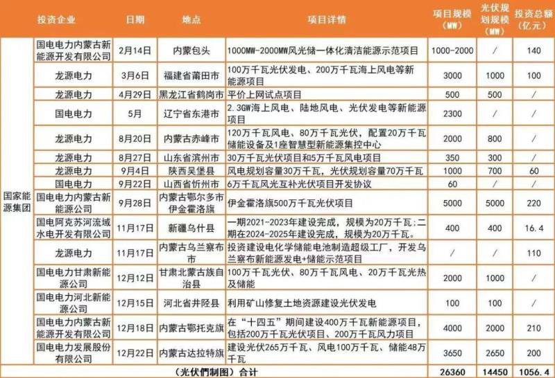 此外,2020年國家能源集團共簽約15個新能源投資建設(shè)項目,投資總額超千億元,總規(guī)模超過26GW,其中光伏近15GW,占比過半。項目遍及內(nèi)蒙古、福建、黑龍江、遼寧、新疆、甘肅、山東、山西、河北、陜西等10個省/自治區(qū)。