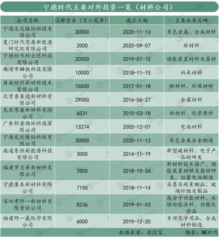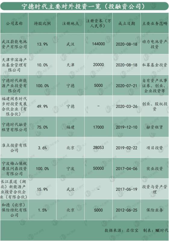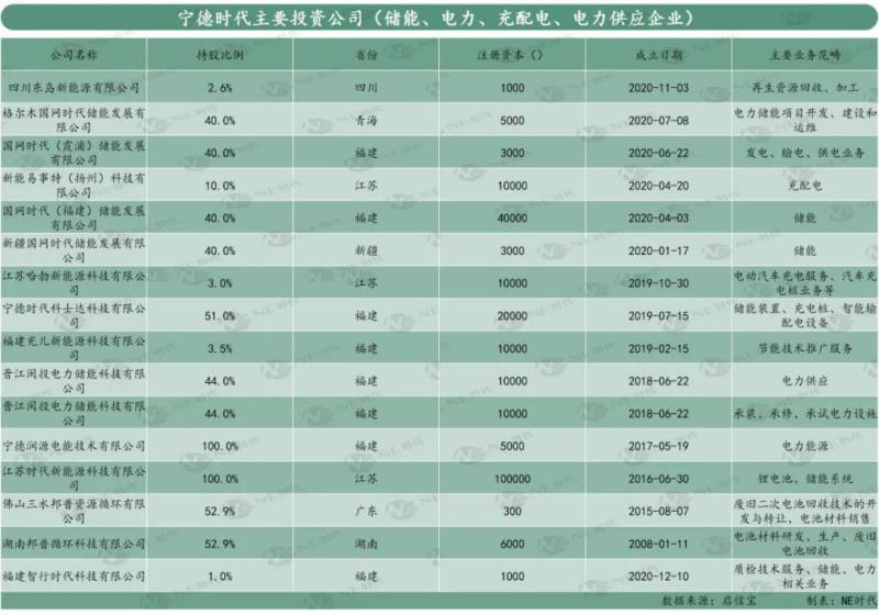 中國(guó)儲(chǔ)能網(wǎng)訊:根據(jù)數(shù)據(jù)不完全統(tǒng)計(jì),從1996年至2020年年底,寧德時(shí)代控股企業(yè)共有163家,對(duì)外投資企業(yè)51家,其中有15家是合資成立的電池制造公司。