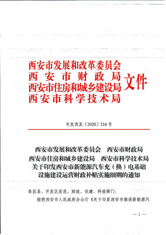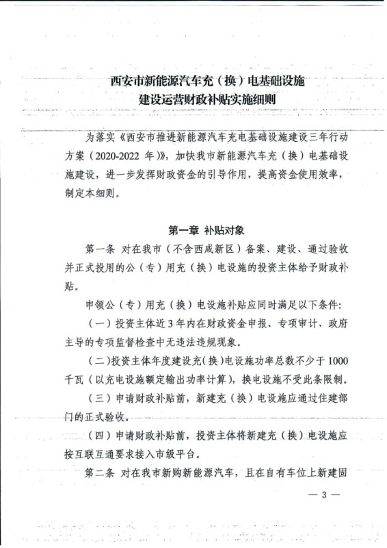 《西安市新能源汽車充(換)電基礎設施建設運營財政補貼實施細則》印發(fā)