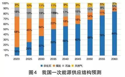 決定碳排放的第二個因素是能源清潔水平,而能源清潔水平是由非化石能源發(fā)展決定的。非化石能源(水、核、風、光等)主要以電能形式被利用,到2060年將作為主要的能源品種用于社會生產生活,預計將占能源消費總量的80%以上(見圖4),客觀上決定了未來以清潔電力為中心的高電氣化能源利用格局,同時也表明電力系統(tǒng)深度脫碳對碳中和目標的重要作用。而非完全電氣化部門,例如少數(shù)工業(yè)過程(采礦、鋼鐵、水泥、化工等部分生產環(huán)節(jié))、交通部門(長距離貨運、遠洋航運和航空等),盡管生產能耗顯著降低,但部分生產環(huán)節(jié)仍需一定量的化石能源,難以實現(xiàn)完全脫碳,意味著仍會有一定數(shù)量的與能源相關的二氧化碳排放。這部分二氧化碳需要由碳匯來中和。碳匯主要包括自然碳匯(自然生態(tài)系統(tǒng)固碳)和技術碳匯(碳捕獲與儲存技術,CCS)。2016年我國森林碳匯達到每年5-6億噸水平;有研究顯示,2010-2016年中國陸地生態(tài)系統(tǒng)碳匯年均11.1±3.8億噸,未來自然碳匯會小幅增加但很難實現(xiàn)翻倍增長。預計2060年我國能源相關碳排放降至14億噸,若加上非能源類碳排放,無法完全依靠自然碳匯實現(xiàn)碳中和,還需發(fā)展技術碳匯。