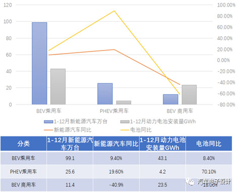 99萬(wàn)純電動(dòng)汽車(chē)的電池裝機(jī)量瑋43.1GWh,占比67.75%,BEV市場(chǎng)的特點(diǎn),單車(chē)裝機(jī)量55kwh以上大的中高端多了,單車(chē)裝機(jī)量30kwh以下的也多了,所以在整車(chē)同比9.4%的增長(zhǎng)同時(shí),電池的增長(zhǎng)8.4%。在25.6萬(wàn)PHEV(增長(zhǎng)19.6%)的條件下,PHEV的電池需求增長(zhǎng)了70%到4.2Gwh,所以今年非常明顯的特點(diǎn)就是PHEV往100公里續(xù)航以上的方向發(fā)展,特別是理想One這樣的增程拉動(dòng)了這塊的需求。純電動(dòng)商用車(chē)萎縮到12萬(wàn)的產(chǎn)量,其市場(chǎng)規(guī)模還有25%,這塊的單車(chē)裝機(jī)量達(dá)到了206kWh,這也是一個(gè)很有意思的現(xiàn)象。