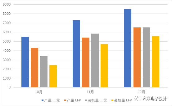 圖4 近三個(gè)月中國(guó)動(dòng)力電池三元和LFP電池產(chǎn)量和裝機(jī)量