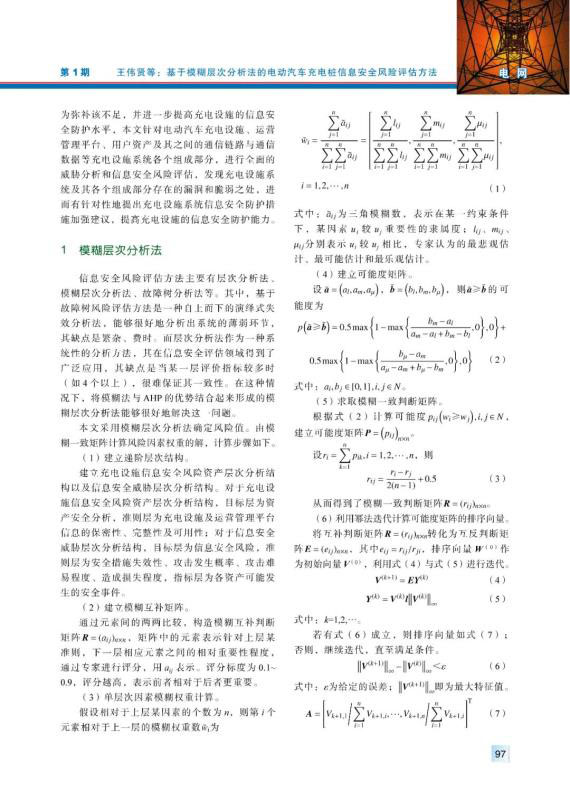 王偉賢, 孫舟, 潘鳴宇, 等. 基于模糊層次分析法的電動汽車充電樁信息安全風(fēng)險評估方法[J]. 中國電力, 2021, 54(1): 96-103.