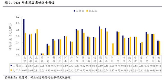 4、在國(guó)內(nèi)工商業(yè)用戶側(cè)配置儲(chǔ)能可實(shí)現(xiàn)“峰谷價(jià)差套利+減少容量電費(fèi)成本”。我國(guó)對(duì)于大容量工商業(yè)用電實(shí)行“容量電費(fèi)+電量電費(fèi)”模式,因此通過(guò)配置儲(chǔ)能,一方面通過(guò)儲(chǔ)能在低谷電價(jià)時(shí)充電,高峰電價(jià)時(shí)放電可減少電量電費(fèi),另一方面由于用電負(fù)荷的高峰用電時(shí)段一般時(shí)間很短,通過(guò)配置削減用電負(fù)荷的“高峰段”,可以減少容量電費(fèi)成本。