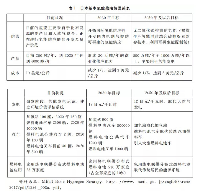 (一)日本“基本氫能戰(zhàn)略”的主要內(nèi)容